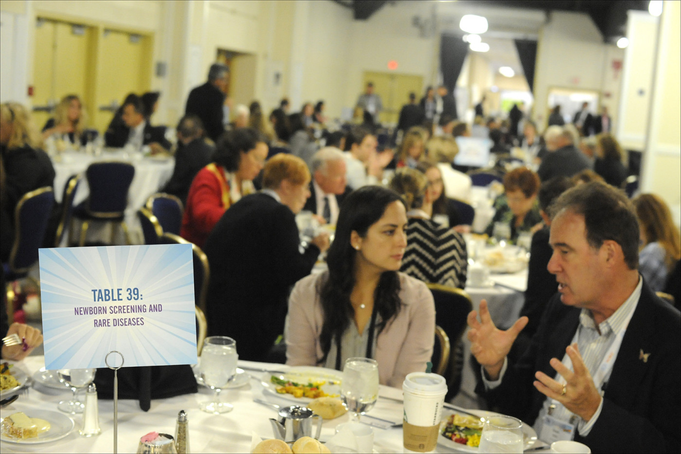 Rare disease patient advocates discuss the benefits of newborn screening at a recent conference. (Photos by Larry Luxner)